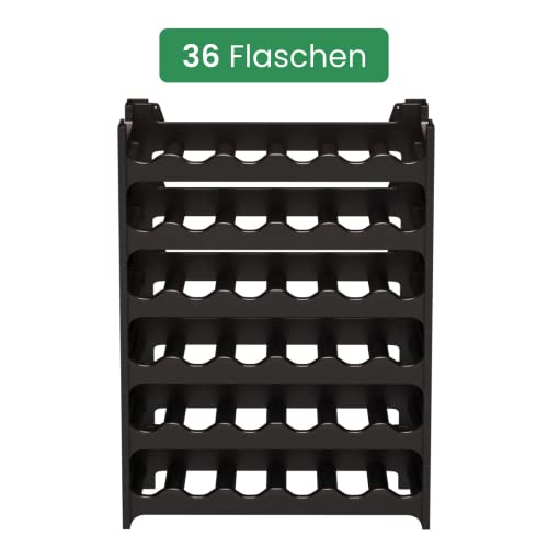 ARTECSIS Weinregal stapelbar Kunststoff für 36 Flaschen, stabiles Flaschenregal in Gastronomie-Qualität, modular erweiterbar, Schwarz