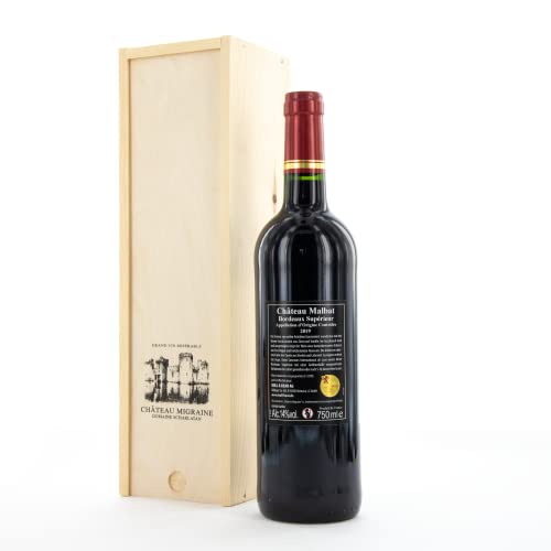 Bull & Bear Château Migraine Domaine Scharlatan Rotwein trocken in Holzkiste, Rotwein aus Frankreich, Geschenkset Geschenkbox