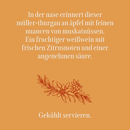 An der Nase erinnert dieser Müller-Thurgau an Äpfel mit feinen Nuancen von Muskat. Ein fruchtiger Weißwein mit frischen Zitrusnoten und angenehmer Säure