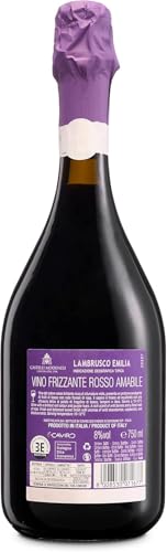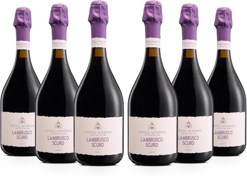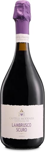 Castelli Modenesi Lambrusco Scuro Amabile Emilia IGT, 0,75 l Flasche, Karton mit 6 Flaschen 750 ml. Wein mit kräftiger rubinroter, aus der Schale extrahierter Farbe, gekeltert zu 85Prozent aus der Rebsorte Lambrusco und zu 15Prozent aus anderen roten Rebsorten, mit einem Alkoholgehalt von 8 Prozent Vol. Voller und angenehmer Geschmack mit einer ausgewogenen Süße und einem vielseitigen und ausgereiften Bouquet, mit Noten von Pflaumenkonfitüre und Nüssen. Schmeckt ausgezeichnet alleine oder als Begleiter zu Wurstwaren und herzhaften ersten Gängen. Erzeugt in Emilia Romagna.