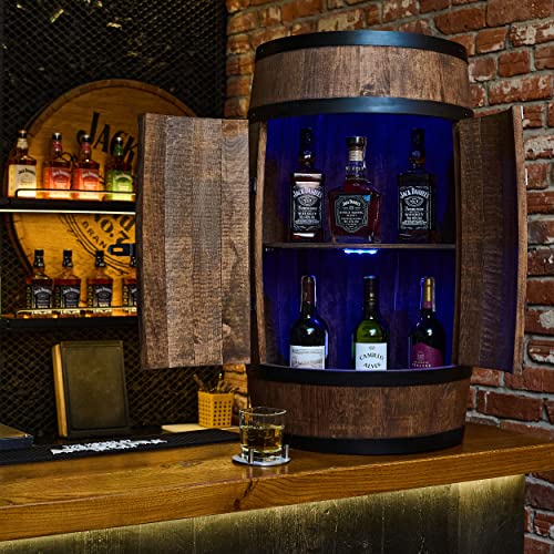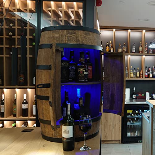 CREATIVE COOPER Weinregal Holz mit Tür mit LED RGB – Alkoholschrank Flaschenregal Holz – Holzfass – Fassmöbel – Weinständer – Weinfass – Weinbar – Fass bar mit Tür – minibar 80 cm High (wenge)