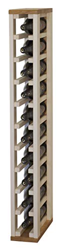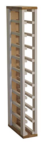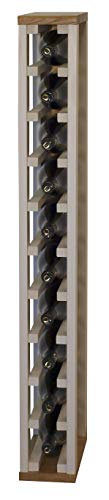 Weinregal aus weiß lackiertem Kiefernholz, obere und Unterseite aus lackiertem Eichenholz.