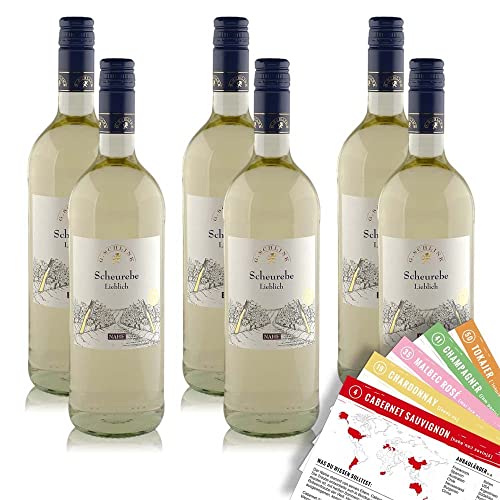 Weingut Günther Schlink Scheurebe Nahe, halbtrocken, im sortenreinen 6 Flaschen (6×0,75l) Weinpaket.Dieses Weinpaket enthält 6 VINOX Weinkarten mit Tipps vom Sommelier.
