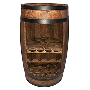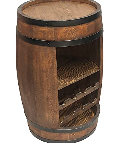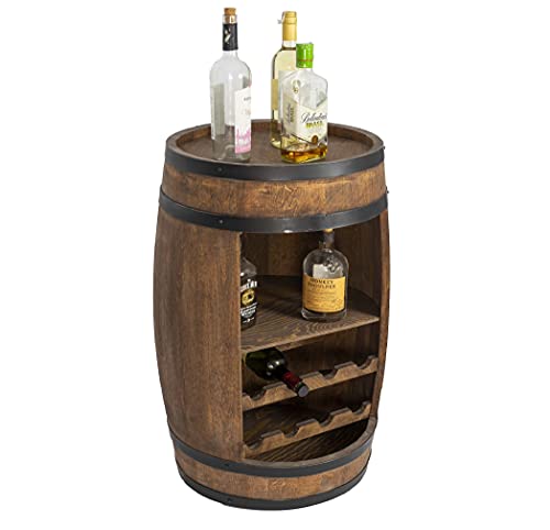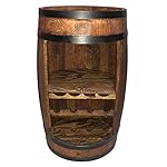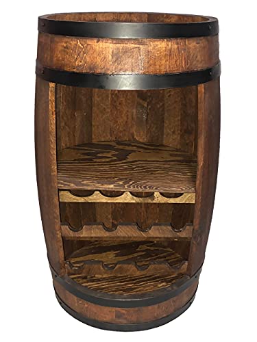Getränkeregal plus Ablagen für Weinflaschen Schrank aus Holzfass, Einzigartiges Regal im vintage Stil mit 2 Fachböden und Weinregalen – Unvergessliches Geschenk!