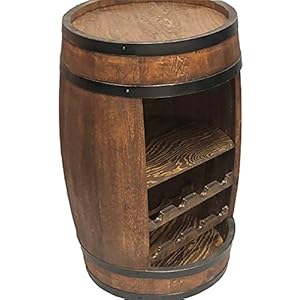 Kombinierter Stil -Alt und modern Stil für jedes Zimmer. Höhe ca. 82cm, Material Erlenholz und Metal, Farbe: dunkelbraun. Weinfass hält etwa 28 Flaschen