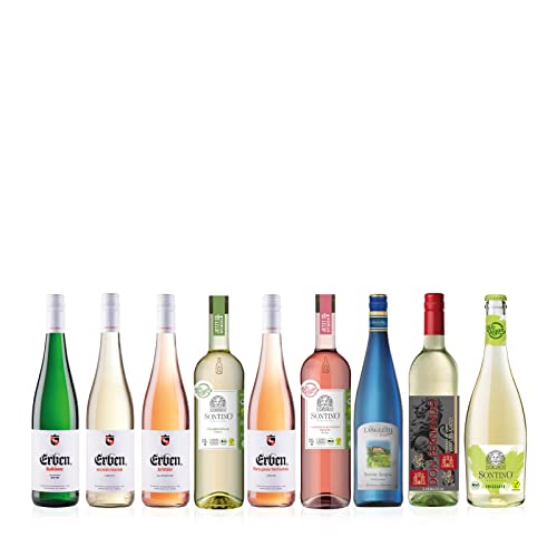fünf Weißweine, drei Roséweine und ein Frizzante – genieße neun fruchtig, frische Sorten aus Deutschland, Italien und Spanien
