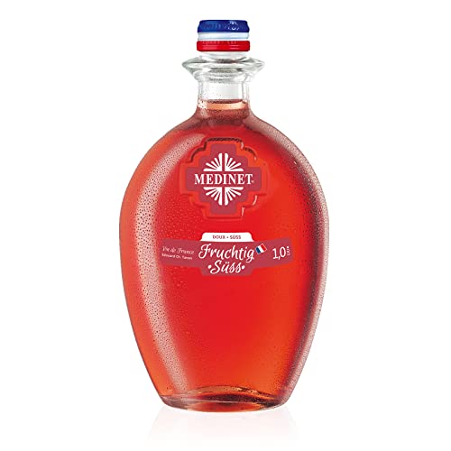 Medinet Rosé Fruchtig Süss überzeugt auf seine ihm eigene Art. Im Glas steht er mit einem kräftigen Rosé-Ton