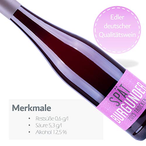 Rebsorte: Die Heimat des Spätburgunders liegt in Burgund, wo er als „Pinot Noir“ bekannt ist. Er zählt zu den Weinen für gehobene Ansprüche und eignet sich am Besten für kühlere Jahreszeiten