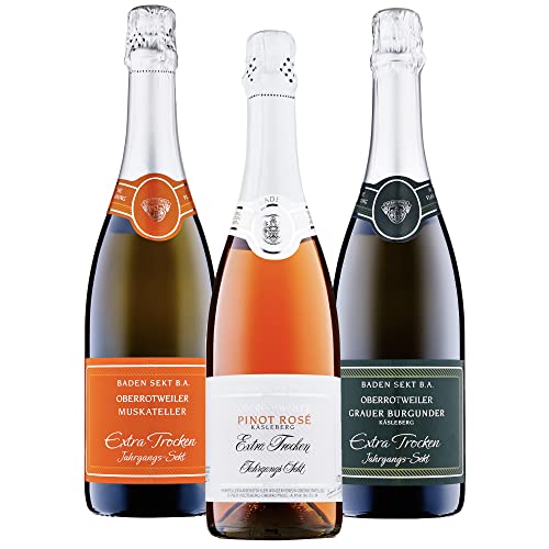 LIEFERUMFANG: Oberrotweiler Sekt-Kollektion (3 x 0,75 Liter) mit je 1 Flasche Muskateller, Grauburgunder und Pinot Rosé Sekt – ideal als Probier-Paket und als edles Sekt-Geschenk für Frauen und Männer