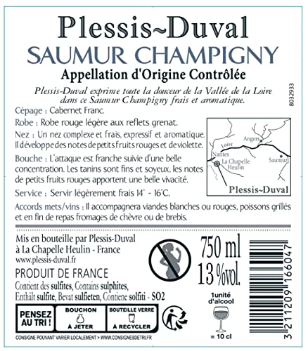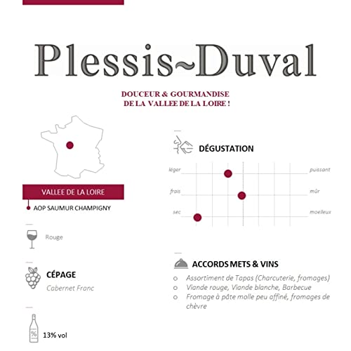 Plessis Duval Saumur Champigny AOP Jahrgang 2021. Die ganze milde Sanftheit des lieblichen Loiretals – eingefangen in diesem frischen und aromatischen Saumur Champigny. Dieser Rotwein präsentiert sich in einer schönen, hellroten Farbe mit granatroten Reflexen Er besticht mit einem komplexen, frischen Bouquet, das sich ausdrucksstark und aromatisch zeigt. Dabei entwickelt er Noten, die an das Aroma von saftigen roten und dunklen Früchten erinnern. Nach einem ehrlichen, geradlinigen Auftakt kann man eine schöne Verdichtung wahrnehmen. Seidig feine Tannine mit Anklängen an rote Beeren verleihen besondere Lebendigkeit. Rebsorten: 100 % Cabernet Franc In diesem Set, das aus 6 Flaschen Rotwein von der Loire besteht, fängt Plessis-Duval die ganze Sanftheit und Eleganz des Loiretals ein: in seiner zarten Finesse liegt seine unwiderstehliche Kraft.
