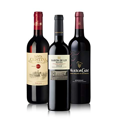 probieren und geniessen: tolle zusammenstellung von drei verschiedenen flaschen rotwein klassiker aus aller welt. sehr gut geeignet für weinproben, weinseminare oder zum einfach selbst genießen!