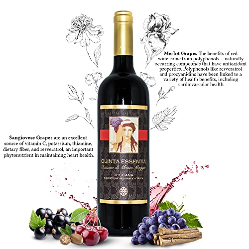 Rotwein – Quinta Essentia di Montemaggio IGT – Italienischer Bio-Rotwein – Super Toskanischer Luxuriöser Edler Bio – Merlot/Sangiovese – Fattoria di Montemaggio – ML. 750-1 Flasche