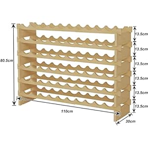 【Einfach zu montieren:】Sie brauchen nur die Seitenbretter und horizontales Bretter zusammenbauen, kein Nagel oder Schraube benötigen; Dank einfacher Konstruktion und Montage, kann der Weinständer durch Erhöhung und Verringerung der horizontalen Bretten der Menge von Weinflasche entsprechen.