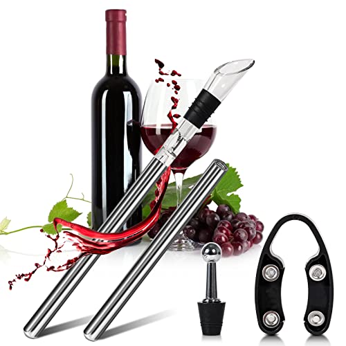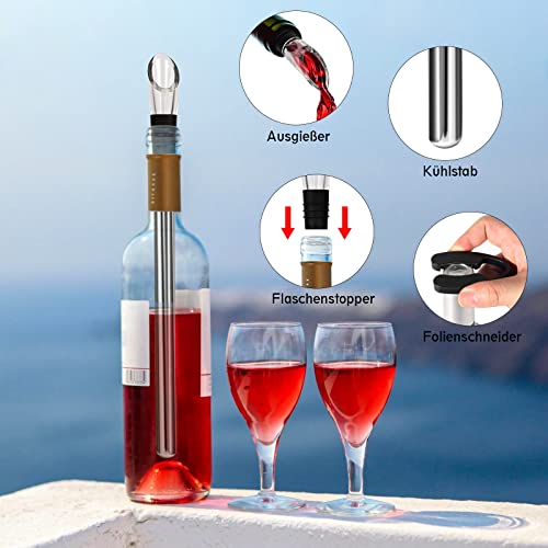 🍷【 5-in -1 Weinkühler Set】Enthält 2 Weinkühler Stab aus Edelstahl, haben LFGB Zertifizierungen garantieren,1 Weingussvorrichtung, ein kleiner Flaschenstopfen und ein Papierschneider.