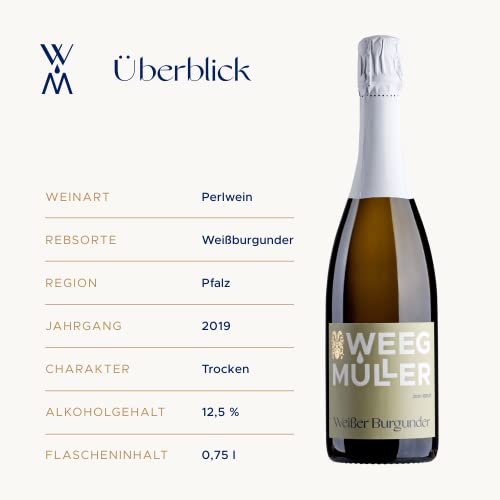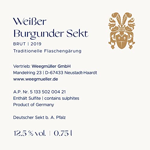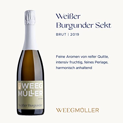 WEEGMÜLLER Weißer Burgunder Sekt Brut | Deutscher Schaumwein/Perlwein aus der Pfalz | Premium-Sekt trocken | Pinot Sekt | 2021 | 12,5% vol. | 1 x 0,75 Liter