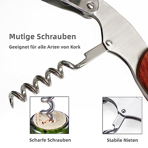 [ERGONOMISCH] Dieser Weinflaschenöffner verfügt über einen eleganten Holzgriff und einen strapazierfähigen Edelstahlkörper, der für einen bequemen und stabilen Halt sorgt. Das Öffnen von Korken war noch nie so einfach!