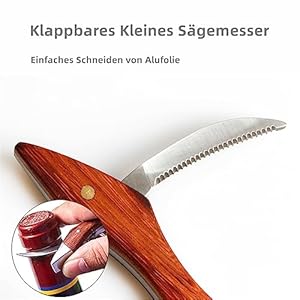[GEZAHNTER FOLIENSCHNEIDER] Der integrierte gezahnte Folienabschneider ermöglicht einen nahtlosen Zugang zum Korken und macht dieses Set zum bevorzugten All-in-One-Weinöffner für Kellner und Weinliebhaber überall.