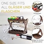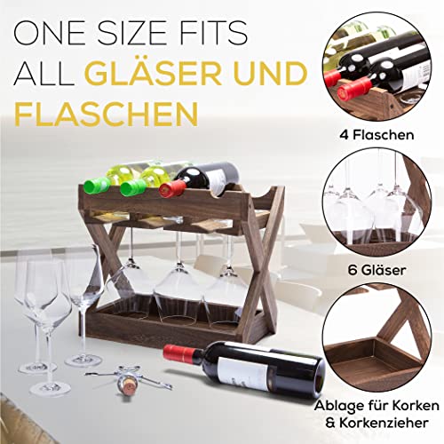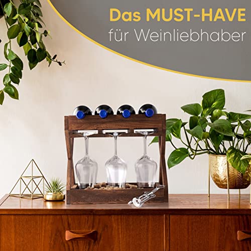 Jetzt ist Schluss damit, in den Keller oder die Abstellkammer zu gehen, um zu schauen ob noch Wein da ist. Unser Weinregal ist stylisch & elegant, kann sowohl im Wohnzimmer als auch in der Küche dekorativ aufgestellt oder in Ihren Schränken integriert werden. Es bietet Platz und Ordnung für 4 Flaschen und bis zu 6 Rot- oder Weißweingläser.